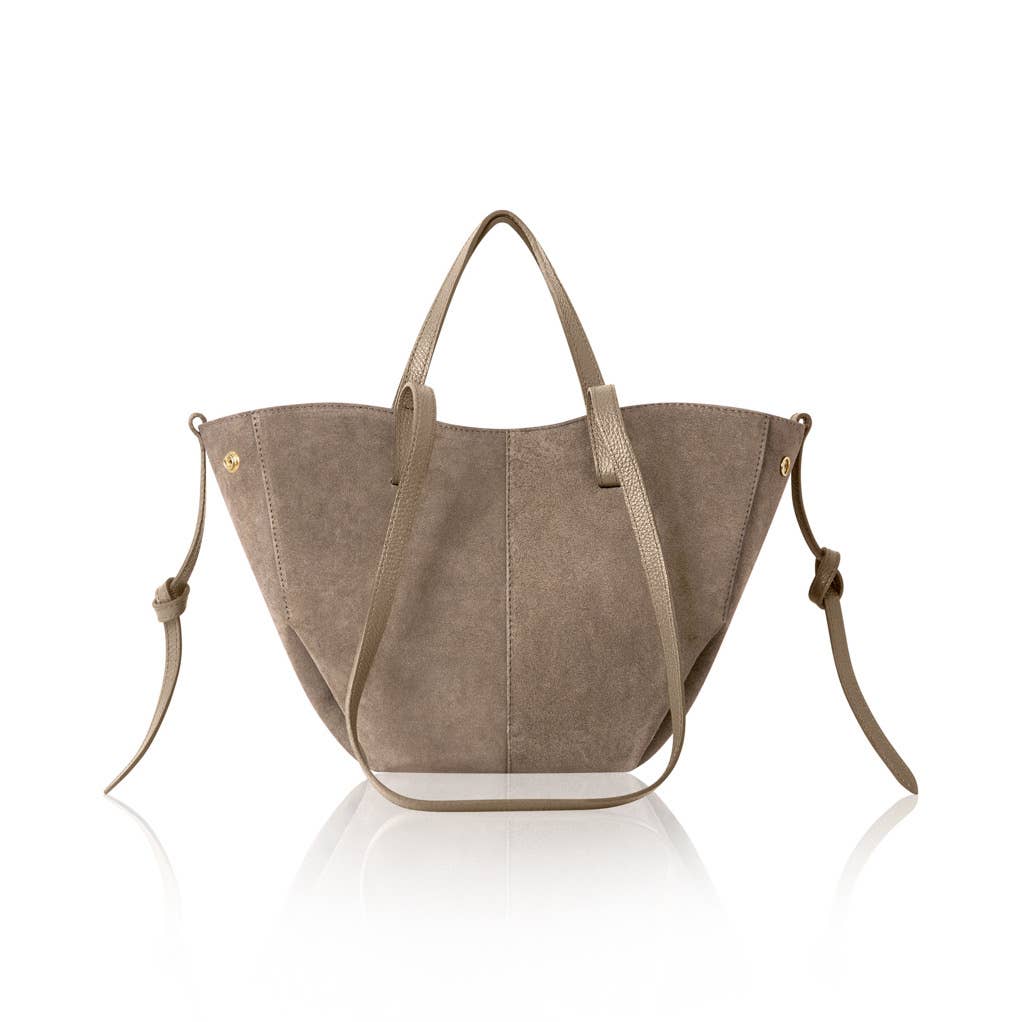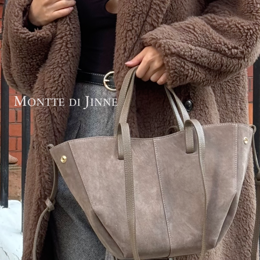 Effortlessly stylish and versatile, this tote bag is crafted from high-quality suede leather with a sophisticated pairing of genuine leather, showcasing a refined and luxurious design.
