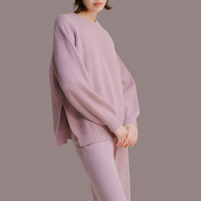 Chelsea Cashmere Mix Crewneck Ribbed Sweater with Side Slits | Pink